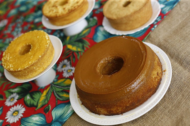Bolo de tapioca com pudim de doce de leite (por Bolo das Meninas)